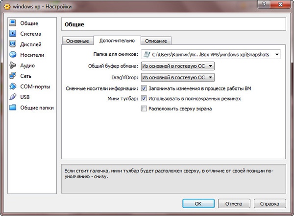 Для того чтобы это стало возможным, функции обмена данными через буфер обмена, а также методом перетаскивания необходимо активировать в общих настройках виртуальной системы.