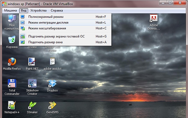 Как известно, в VirtualBox все операции с виртуальной системой производятся в отдельном окне. Это может быть связано с определенными неудобствами, особенно в тех случаях, когда пользователю приходится постоянно переключаться между хостовой и виртуальной системой. Активировав режим интеграции дисплея можно “объединить” их интерфейсы, сделав, таким образом, свою работу немного более комфортной. Пример использования этой функции вы можете видеть на втором скриншоте – окно Панели управления виртуальной Windows XP открыто прямо в интерфейсе хостовой Windows 7.